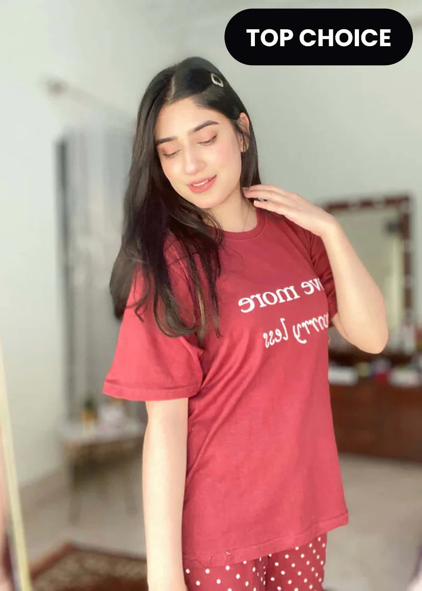 Stay cozy and stylish with our Love More Printed Night Suit. Crafted from soft, breathable fabric, it ensures all-night comfort and a gentle, relaxed fit for restful sleep.